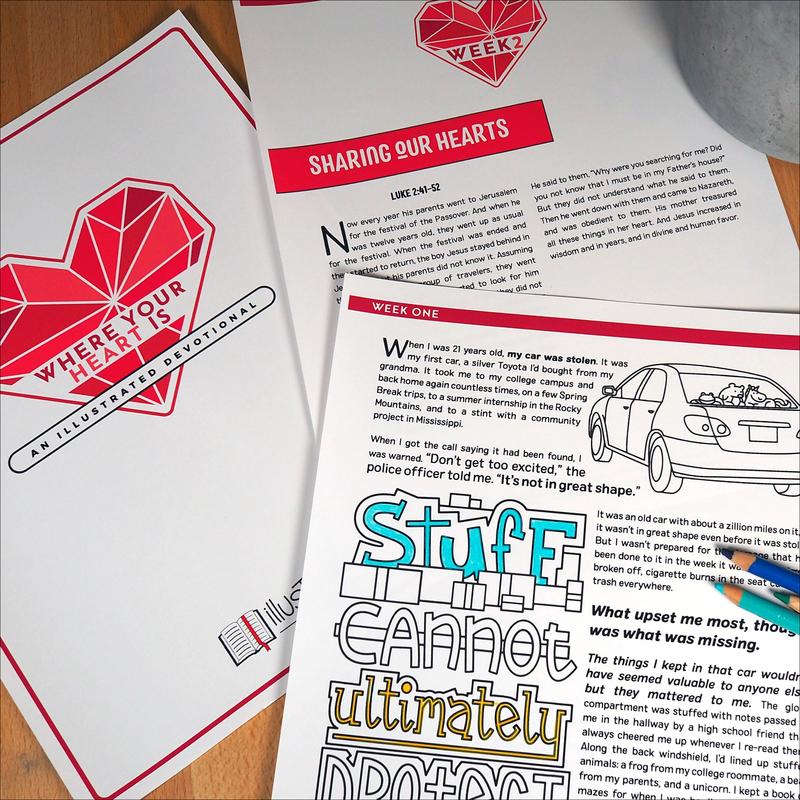 Although it has one devotion per week, I believe that there is plenty to work on through the week, so it becomes a bit of a hybrid, big bang for your buck, resource. You can find this resource here: https://store.illustratedministry.com/collections/lent/products/where-your-heart-is-an-illustrated-devotional